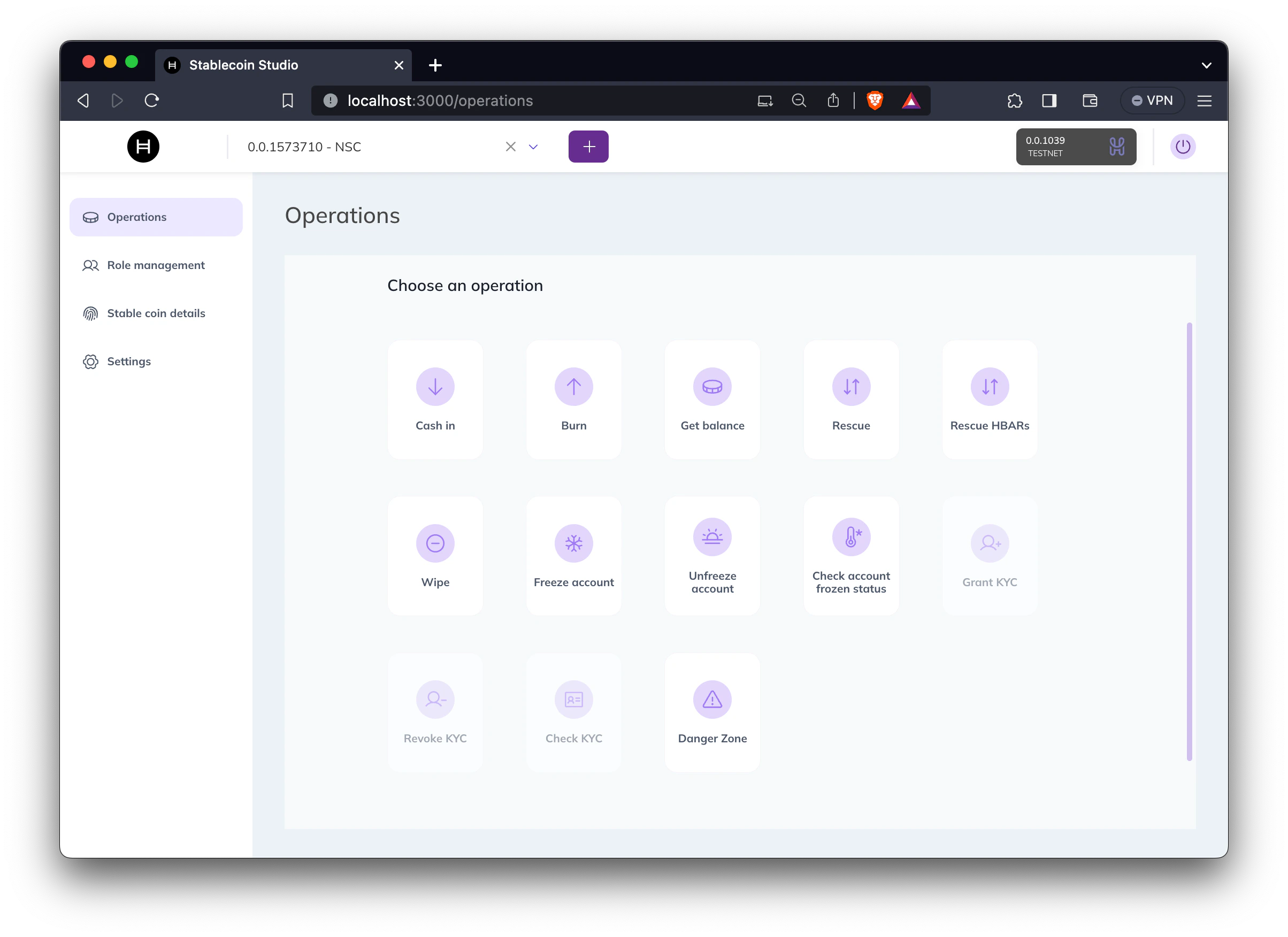 To carry out an operation, simply click on the corresponding button and follow the on-screen prompts. The platform will automatically perform the operation based on the capabilities your account has been assigned. The “Operations” tab in Stablecoin Studio is your hub for managing every aspect of your stablecoin, so make sure you’re familiar with the roles and capabilities assigned to your account to leverage the suite of operations available to you fully.