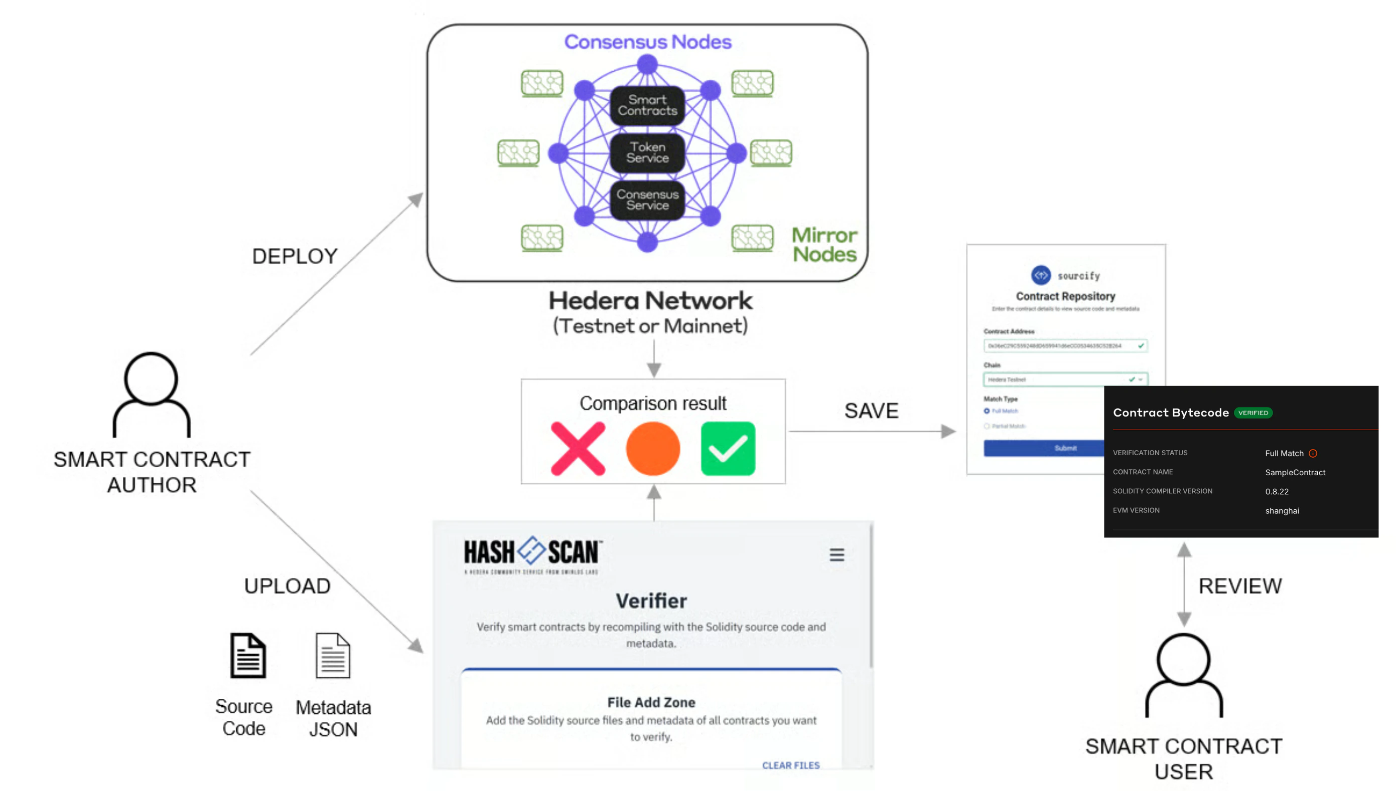 On HashScan, go to the contract’s page, click Verify, and upload the corresponding single